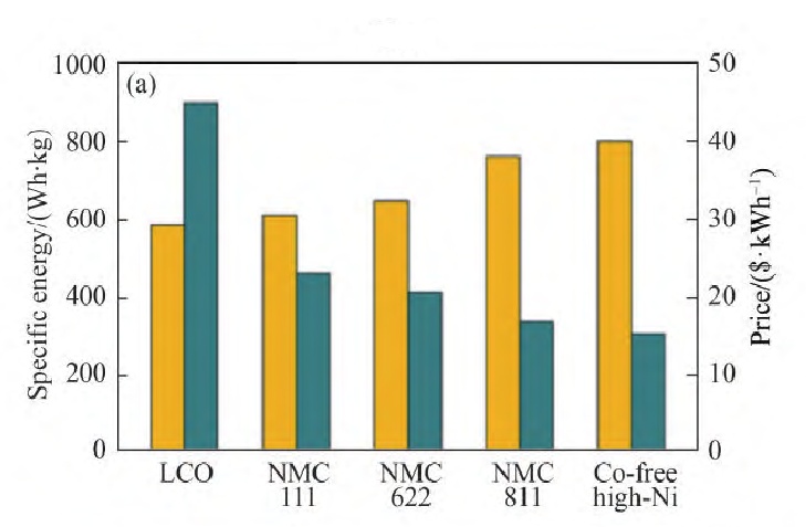 雖然無鈷高鎳正極材料大多存在著循環性能和倍率性能較差等問題,但其具有環保清潔、價格低廉、實際比容量高等特點,不論在經濟層面還是性能層面都顯現一定的優勢,展現出良好的商業化應用前景。