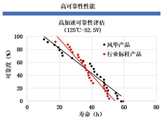 風華高科成功自主開發了高容高壓材料體系,攻克了均一薄介、異質共燒、層壓變形等核心材料應用工藝技術,突破0603X106高電壓高可靠性性能要求,產品BDV達到210V,絕緣電阻210MΩ,且1000h老化后,15V直流偏置電壓下,產品容量保持1μF以上,可靠性與行業標桿產品近似,綜合性能達到國際頭部企業同等水平。