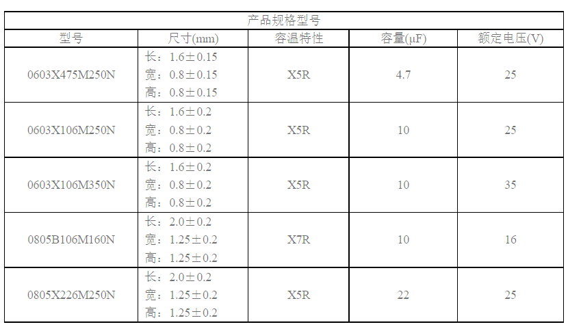 基于該材料體系,公司成功推出一系列高容高壓高可靠性產品(如下表所示),該系列產品可以滿足各類通訊、家電、電源和工控類產品在電源輸入及輸出的濾波應用,具有偏壓容量高、耐壓高和高可靠性特性,打破國外技術壟斷,實現此類產品自主可控。