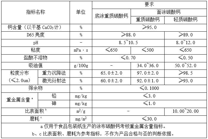 涂布級碳酸鈣的技術指標要求(QB/T2811-2019造紙用碳酸鈣)
