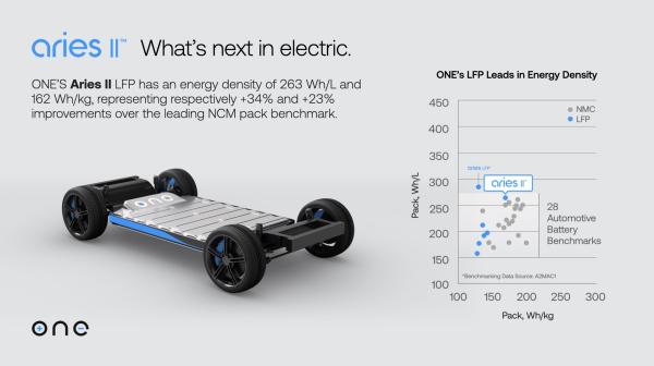 可以看到,跟比亞迪的磷酸鐵鋰刀片電池相比,ONE的電池產(chǎn)品甚至更具優(yōu)勢。ONE公司也表示,跟三元鋰電池相比,白羊座II電池成本也便宜25%,并且比三元電池續(xù)航時(shí)間更長。