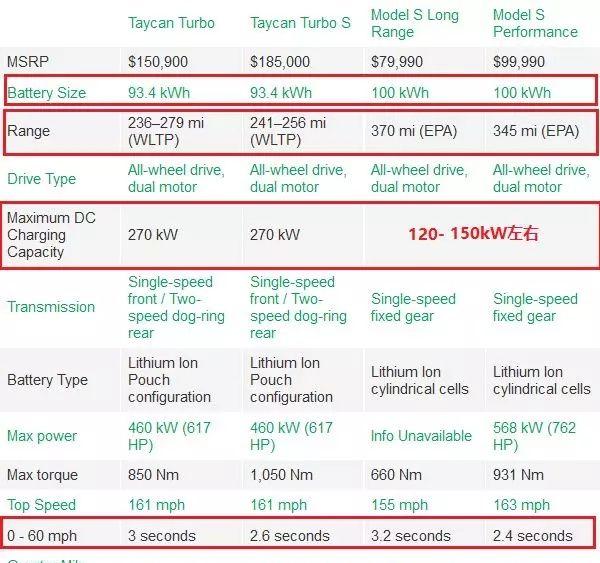 特斯拉Model 3和Model Y上82千瓦時(shí)電池包的重量能量密度為171 Wh/kg,使用的是由日本松下供應(yīng)的三元圓柱形鋰離子電池。保時(shí)捷Taycan2019款Turbo S衍生版擁有93.4千瓦時(shí)的電池包,重630公斤(1389磅),使用的是韓國LG新能源提供三元鋰軟包電池,電池包重量能量密度為148.3 Wh/kg。