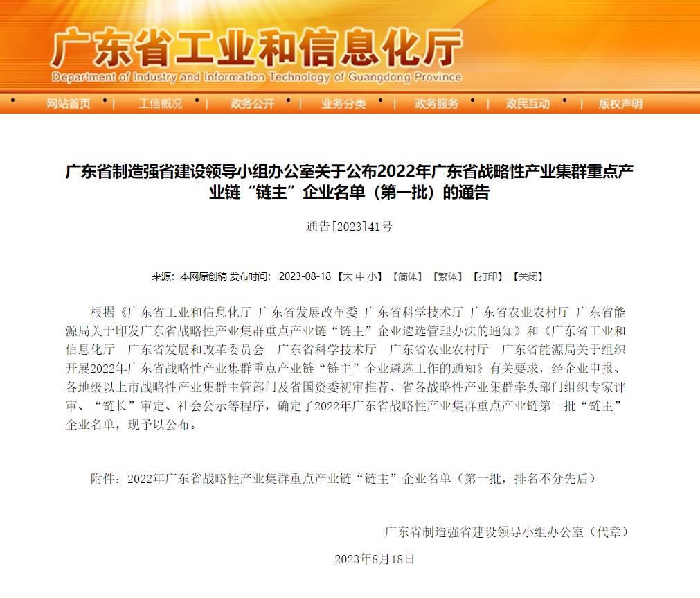 根據《廣東省戰略性產業集群重點產業鏈“鏈主”企業遴選管理辦法》, 產業鏈“鏈主”企業是指處于產業鏈供應鏈核心優勢地位,對于優化資源配置、技術產品創新和產業生態構建有重大影響力的企業,有能力且有意愿對增強廣東產業鏈供應鏈穩定性和競爭力、健全和壯大產業體系發揮重要作用的企業。