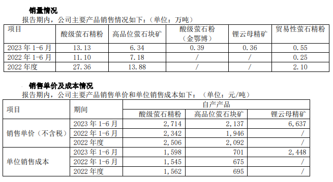金石資源上半年實現(xiàn)營業(yè)收入55,882.55萬元,同比增長33.30%;歸屬于上市公司股東的凈利潤12,645.45萬元,同比增長34.71%。營收和利潤的增長主要得益于公司螢石業(yè)務量價齊升,以及江西金嶺含鋰細泥提取鋰云母精礦項目、包鋼“選-化一體化”項目開始貢獻利潤。