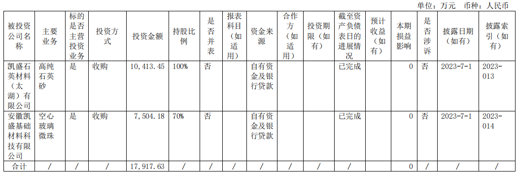 2023年上半年,凱盛科技實現(xiàn)營收27.06億元,歸母凈利潤7406.22萬元。上半年,凱盛科技完成太湖石英100%股權、凱盛基材70%股權的收購工作。其中太湖石英年產(chǎn)5000噸高純石英砂項目目前正處于發(fā)展戰(zhàn)略機遇期,市場前景廣闊,與公司合成法制備的高純石英砂可形成緊密的產(chǎn)業(yè)聯(lián)動。