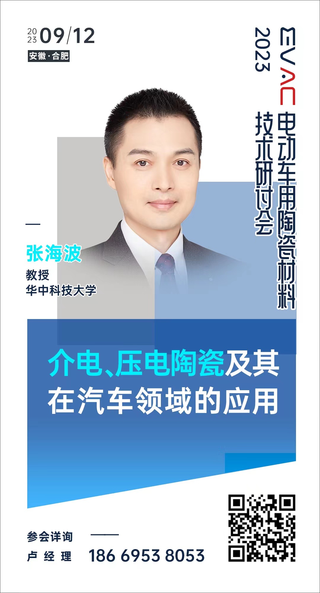 中國粉體網(wǎng)于2023年9月12日在合肥舉辦“第一屆電動(dòng)車用陶瓷材料技術(shù)研討會(huì)”。屆時(shí),來自華中科技大學(xué)張海波教授將帶來《介電、壓電陶瓷及其在汽車領(lǐng)域的應(yīng)用 》的報(bào)告,講一講介電、壓電陶瓷在汽車領(lǐng)域中的應(yīng)用及未來發(fā)展趨勢(shì)。