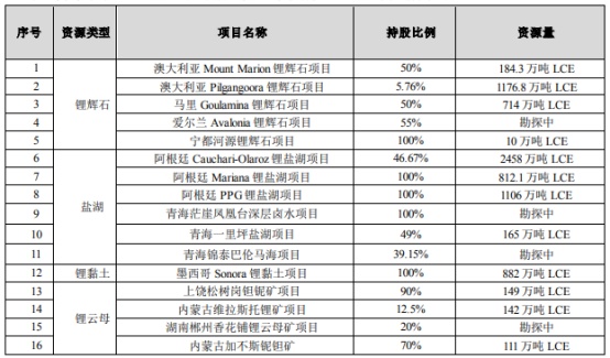 截至目前,贛鋒鋰業(yè)在全球范圍內(nèi)直接或間接擁有權(quán)益的上游鋰資源情況如下: