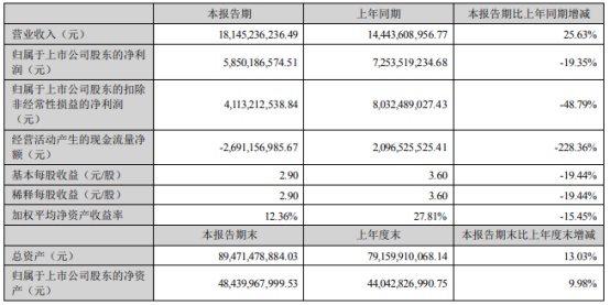 上半年凈利58.5億元
