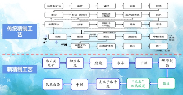針對傳統高純石英砂精制工藝中的流程長和除雜介質污染環境問題,侯清麟教授不懈鉆研、努力探究,提出工藝創新思想: