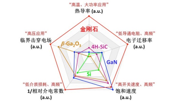 金剛石材料的熱導率和電學特性優勢十分顯著,沒有任何明顯短板,其熱導率可達2000W/m.k,是銅、銀的5倍,又是良好的絕緣體,這也使得金剛石器件擁有更高的功率處理能力,也意味著采用金剛石微波功率器件的電子系統有望擺脫龐大笨重的散熱模塊而實現輕量化、小型化。此外,在熱導率要求1000~2000W/(m.k)之間,金剛石是首選以及唯一可選熱沉材料,對于IGBT功率模塊的散熱問題,金剛石熱沉片的超高熱導率可以實現高效散熱。