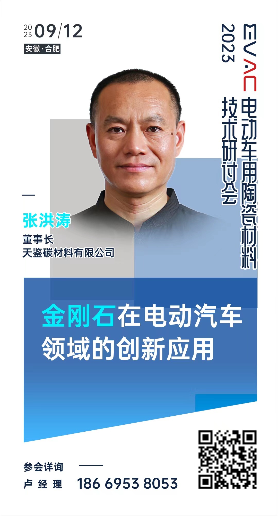 總之,金剛石在新能源汽車產業的應用前景廣闊,隨著相關技術的不斷發展,其潛力將得到進一步的釋放。那么,金剛石作為具有獨特物理化學特性的新型材料,在新能源汽車領域究竟有何助力?其發展前景到底如何?2023年9月12日,中國粉體網在合肥舉辦“第一屆電動車用陶瓷材料技術研討會”。 天鑒碳材料有限公司張洪濤董事長將帶來題為《金剛石在電動汽車領域的創新應用》的報告,屆時,張洪濤董事長將為大家一一解答,歡迎報名參會。