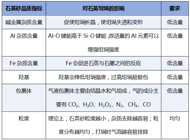 石英坩堝對(duì)于石英砂的品質(zhì)需求