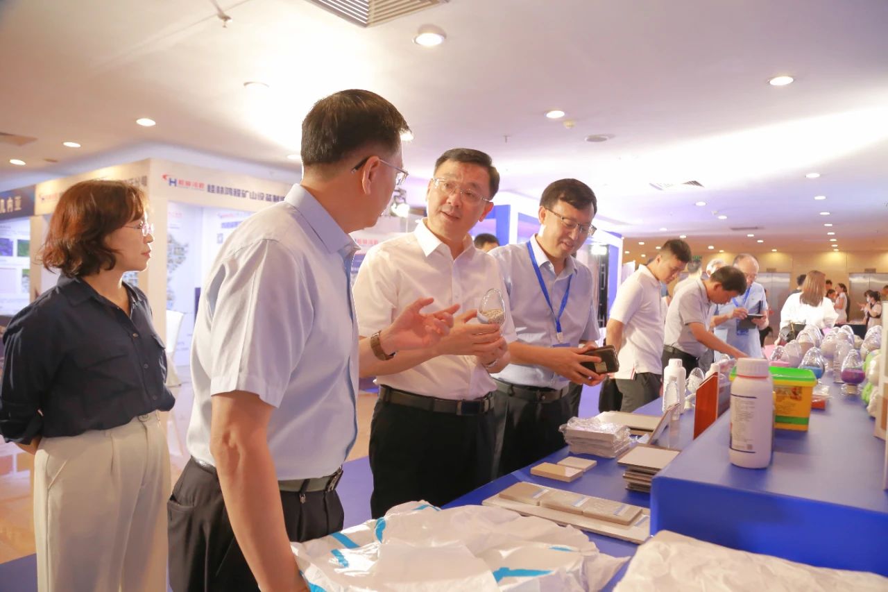 來賓市市長廖和明在碳酸鈣全產(chǎn)業(yè)鏈產(chǎn)品展示區(qū)參觀