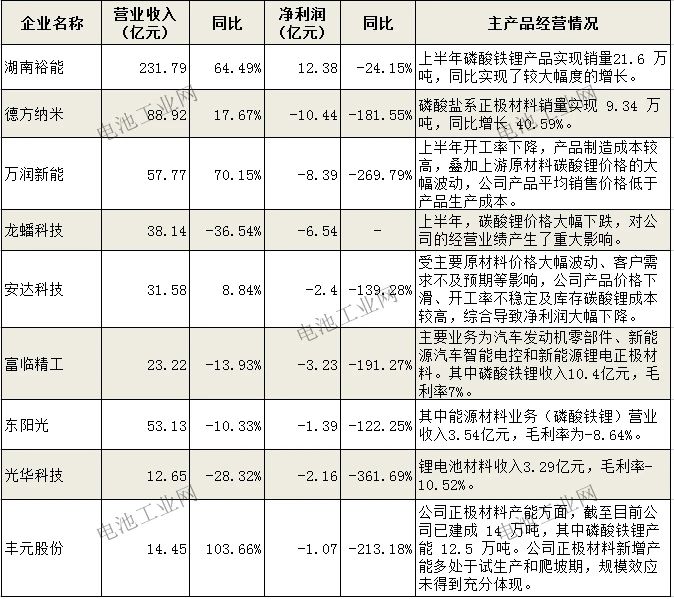 上半年,新能源汽車等鋰電池終端市場消費增速不及預期,碳酸鋰價格大幅波動,磷酸鐵鋰新建產能集中釋放等因素,造就了磷酸鐵鋰企業整體經營虧損的局面。
