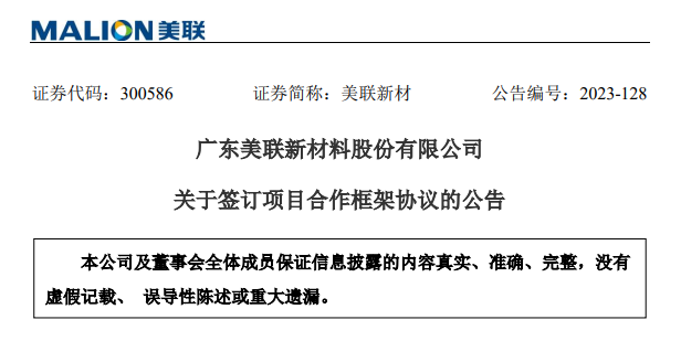 參考來源:美聯新材 《關于控股孫公司簽訂普魯士藍鈉離子電池正極材料銷售合同的自愿性信息披露公告》、《關于簽訂項目合作框架協議的公告》
