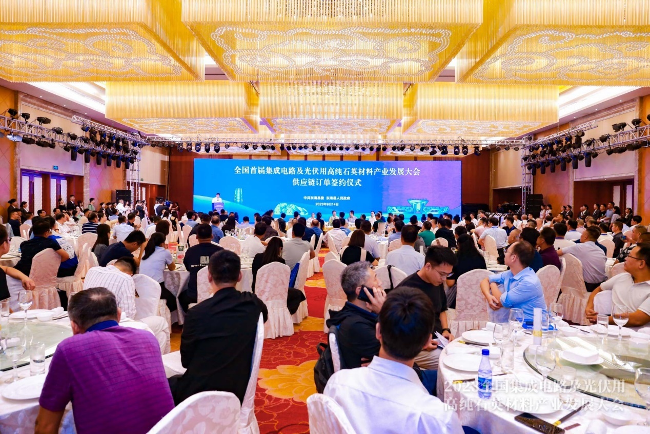 9月14日晚,東海縣政府舉辦了“產業中國 大美晶都”接待晚宴。晚宴主要分為兩部分。第一部分為會議環節,由東海縣縣委副書記、縣長張其兵主持,連云港市副市長、縣委書記宋波致辭,薛劍副縣長推介東海;企業供銷合同集中簽約。第二部分是餐敘環節,主辦方組織了現場互動活動和精彩的文藝表演,為高純石英材料產業的發展送上祝福。赴宴人員相互交流,各抒己見,宴會現場歡歌笑語!