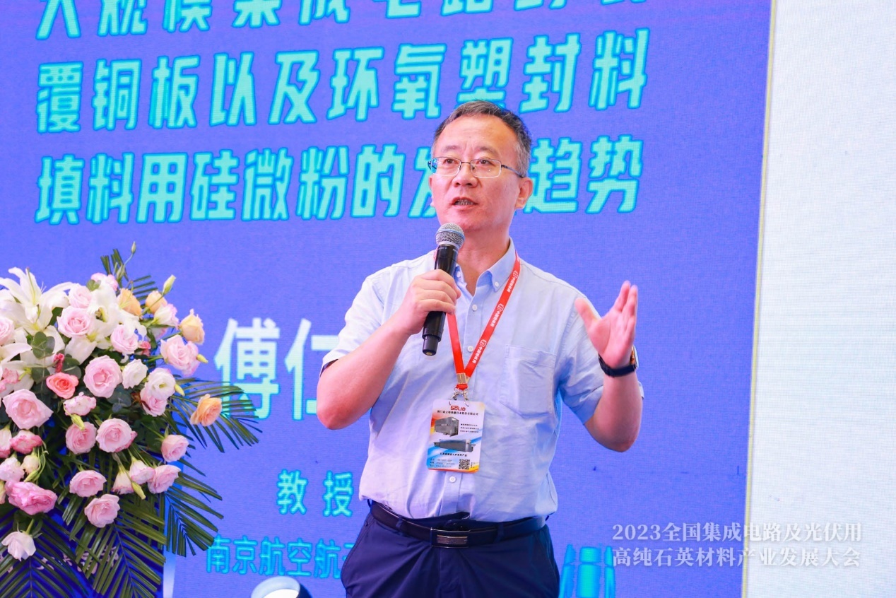 南京航空航天大學教授傅仁利作《大規模集成電路封裝覆銅板以及環氧塑封料填料用硅微粉的發展趨勢》報告