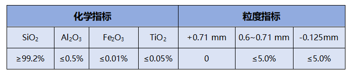 光伏玻璃用石英原料指標(biāo)要求表