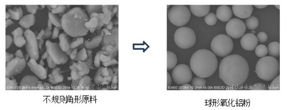 此外,球形的粉體因具有規(guī)則的形貌、更大的堆積密度、好的流動性等性質(zhì),可大大提高產(chǎn)品的應能。因而,除了在導熱領域以外,球形Al2O3粉體在陶瓷、催化劑載體等多個領域被廣泛的應用與研究。