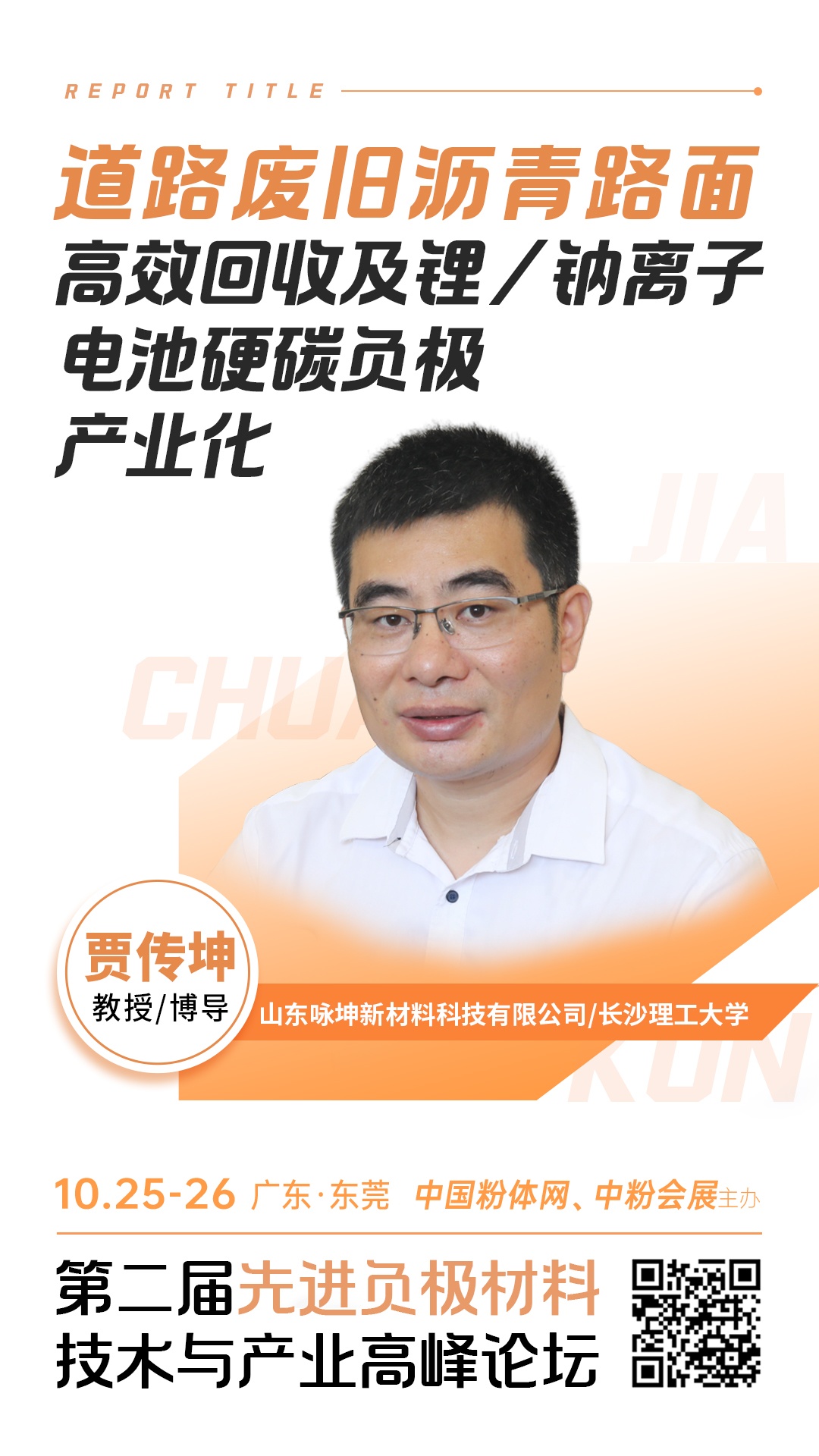 針對各類負極材料的產業化技術與國內外市場狀況,中國粉體網將于10月25-26日在東莞舉辦第二屆先進負極材料技術與產業高峰論壇。屆時,長沙理工大學教授賈傳坤將作題為《道路廢舊瀝青路面高效回收及鋰/鈉離子電池硬碳負極產業化》的報告。報告圍繞道路廢舊瀝青路面回收利用以及鋰/鈉離子電池硬碳負極產業化而展開,分析總結硬碳材料在鋰/鈉離子電池中的應用現狀。