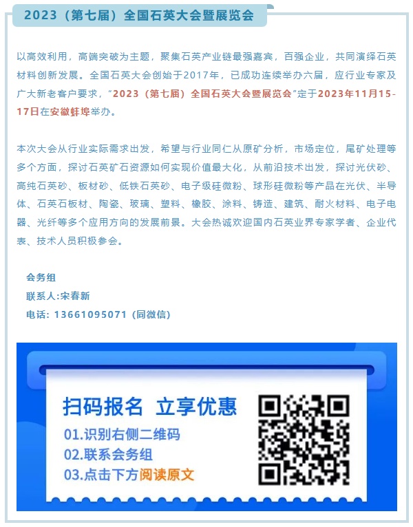 [導讀]  銘遠環?萍寂c您相約安徽蚌埠!2023(第七屆)全國石英大會暨展覽會