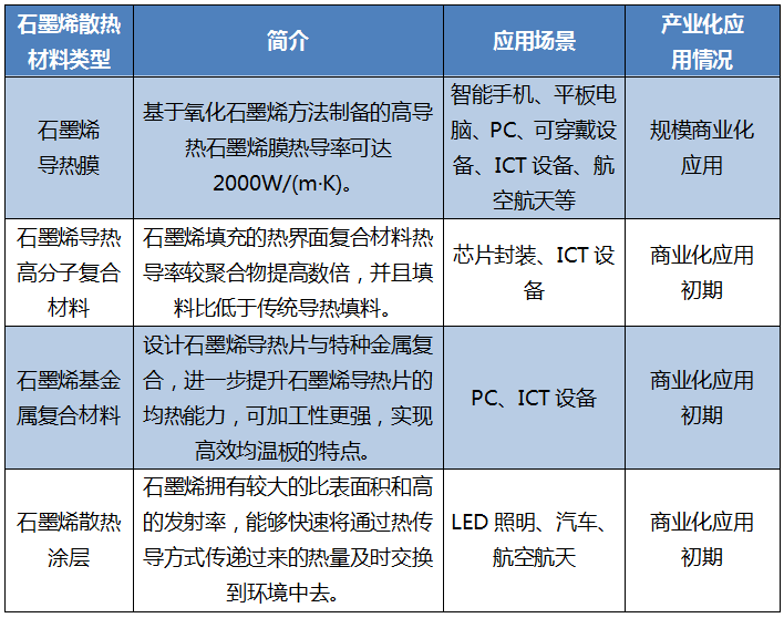 目前在導熱散熱領域中,被廣泛研究的石墨烯散熱材料類型包括石墨烯導熱膜、石墨烯導熱高分子復合材料、石墨烯基金屬復合材料、石墨烯散熱涂層等。