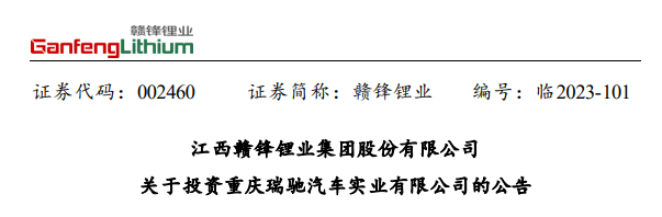 此前,贛鋒鋰業(yè)已對多家新能源整車品牌投資。