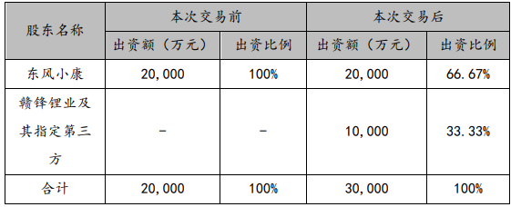 中國粉體網(wǎng)訊  9月26日,贛鋒鋰業(yè)發(fā)布公告稱與賽力斯集團(tuán)股份有限公司(以下簡稱“賽力斯”)全資子公司東風(fēng)小康汽車有限公司及其全資子公司重慶瑞馳汽車實業(yè)有限公司(以下簡稱“瑞馳電動”)簽署《關(guān)于重慶瑞馳汽車實業(yè)有限公司之投資協(xié)議》,公司或公司指定的第三方擬以現(xiàn)金人民幣10億元認(rèn)購瑞馳電動新增的1億元注冊資本。本次增資完成后,公司或公司指定的第三方將合計持有瑞馳電動 33.33%股權(quán),東風(fēng)小康將持有瑞馳電動 66.67%股權(quán)。