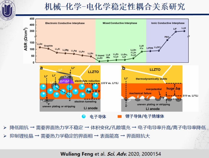 馮吳亮副研究員首先從器件角度入手,深入探討上述四類穩定性的決定因素,及其相互作用的基本規律,為固態電池基礎科學問題研究提出新見解。