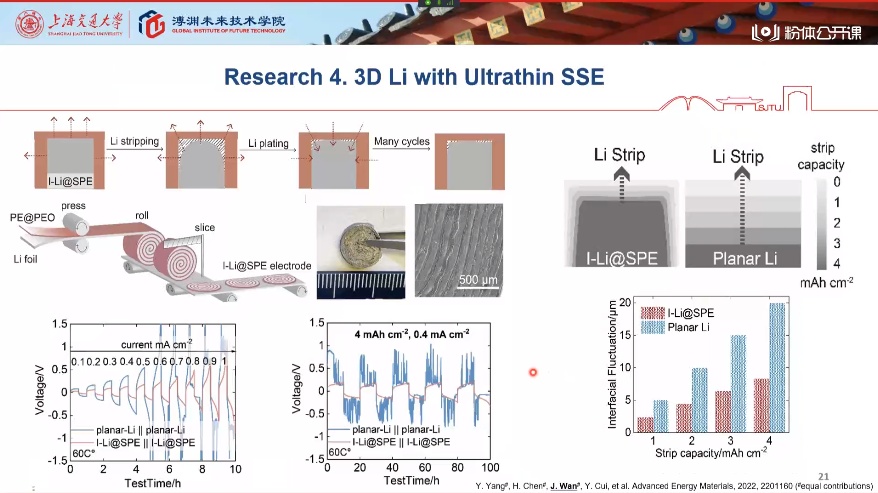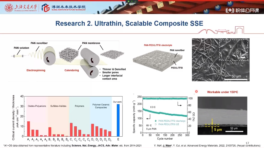 通過新型固態電解質材料、結構、和界面的研究,展示厚度可低至5微米,且具有熱穩定性、不易燃性和高機械強度,抵抗鋰枝晶刺穿效果好。