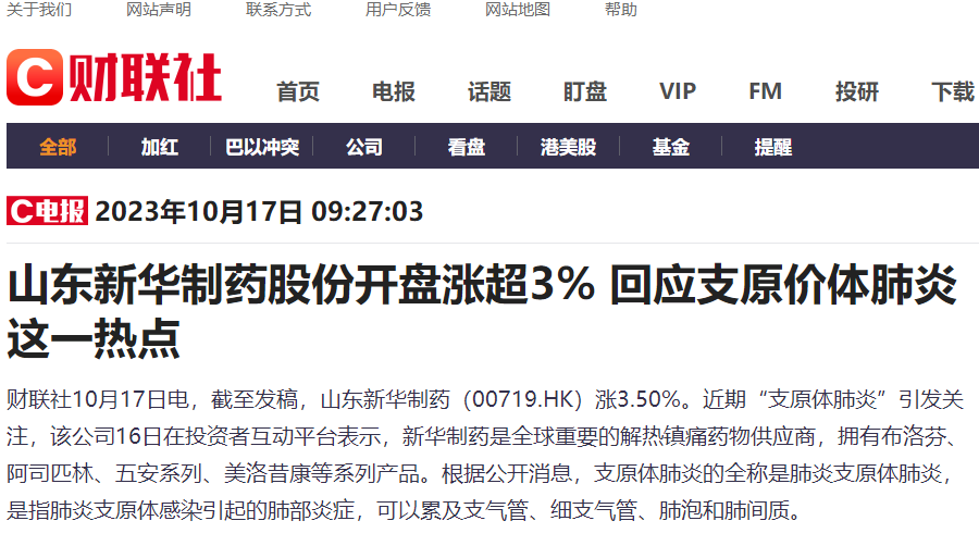 財聯(lián)社:山東新華制藥股份開盤漲超3% 回應(yīng)支原價體肺炎這一熱點