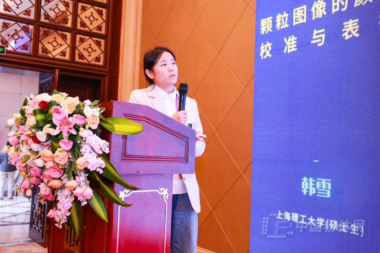 韓雪作《顆粒圖像的顏色校準與表征》報告,搭建了彩色圖像法顆粒測量系統,采用色塊校準前后與色塊參考色值的平均色差來評估算法的回歸能力,驗證在不同光源種類照射下該色彩校準方法的可行性。