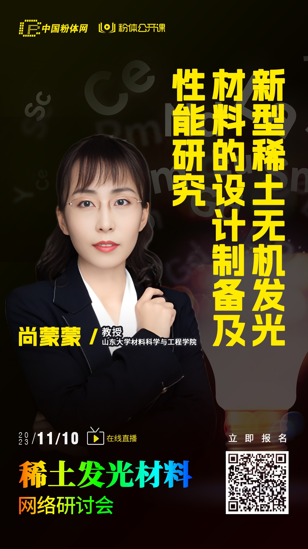 中國粉體網訊  稀土發光材料是稀土資源髙值化的重要應用領域,其具有多種顏色、高亮度、高效率、長壽命等優點,在光電子、生物醫藥、環境保護等領域都得到了廣泛應用。為進一步探索稀土發光材料新的制備方法,開拓稀土發光材料的新應用,粉體公開課特舉辦稀土發光材料網絡研討會,給大家提供一個線上交流學習的平臺。