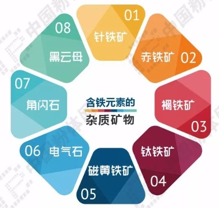 在石英砂中,主要礦物是石英,還含有一些其他雜質礦物,其中含鐵元素的雜質礦物主要包括:針鐵礦、赤鐵礦、褐鐵礦、鈦鐵礦、磁黃鐵礦、電氣石、角閃石、黑云母等。石英砂鐵雜質存在的狀態有:伴生的黏土中鐵雜質及伴隨重礦物質、顆粒表面的泥質和薄膜鐵、石英砂顆粒內部鐵雜質及分布于晶體中的原生包裹體等幾種形式。