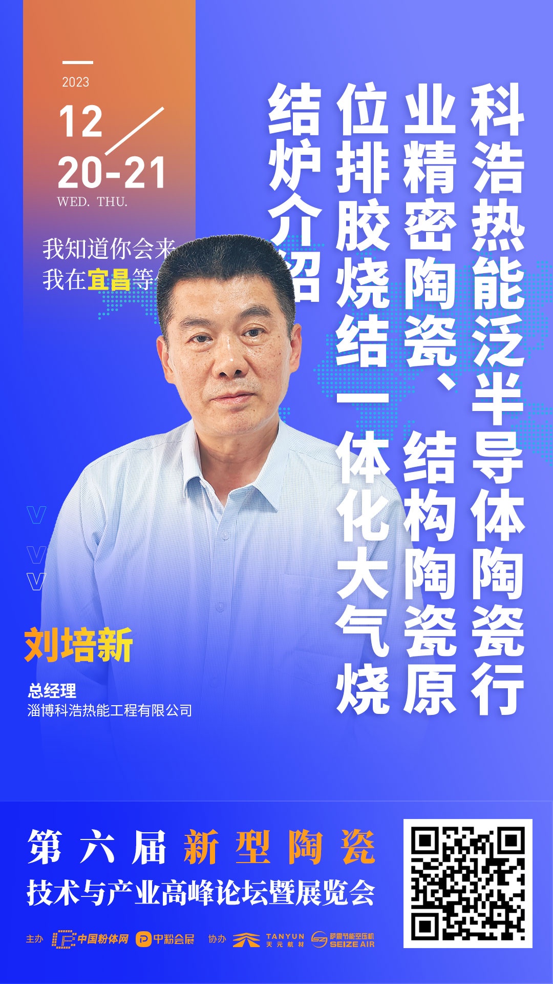 中國粉體網(wǎng)將于2023年12月20-21日在湖北宜昌舉辦“第六屆新型陶瓷技術(shù)與產(chǎn)業(yè)高峰論壇”,屆時,淄博科浩熱能工程有限公司總經(jīng)理劉培新將帶來題為《科浩熱能泛半導(dǎo)體陶瓷行業(yè)精密陶瓷、結(jié)構(gòu)陶瓷原位排膠燒結(jié)一體化大氣燒結(jié)爐介紹》的報告,帶你了解泛半導(dǎo)體陶瓷材料用大氣燒結(jié)爐的故事。
