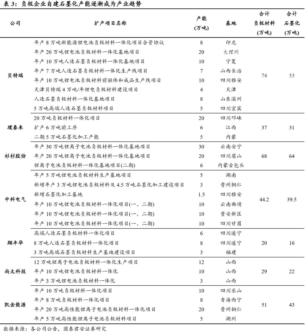 2.3 石墨化供給:負級龍頭企業一體化產能貢獻新增供給