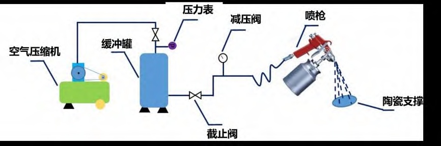 噴涂法是利用噴槍將分散好的制膜液霧化成小液滴,隨后沉積在支撐體表面形成膜層。噴涂法主要的操作參數有噴槍與支撐體的距離、噴涂壓力和噴涂時間等。