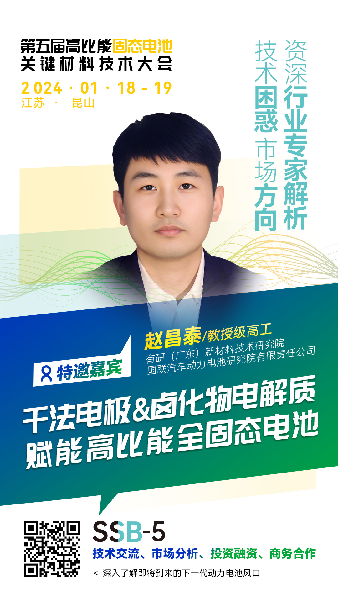 針對固態電池相關的技術、材料、市場及產業等方面的問題,中國粉體網將在昆山舉辦第五屆高比能固態電池關鍵材料技術大會。為致力于固態電池技術開發的企業,科研院校,以及電動車、儲能、特種應用等終端企業提供信息交流的平臺,開展產、學、研合作,共同推動行業發展。屆時,有研(廣東)新材料技術研究院/國聯汽車動力電池研究院有限責任公司教授級高級工程師趙昌泰將作題為《干法電極&鹵化物電解質賦能高比能全固態電池》的報告。報告主講人將通過對比不同種類固態電解質的優缺點,介紹鹵化物電解質的研究進展,還將與大家分享有研廣東院在鹵化物電解質開發、干法電極工藝開發、全固態軟包電池共性技術開發等方面的研究進展。