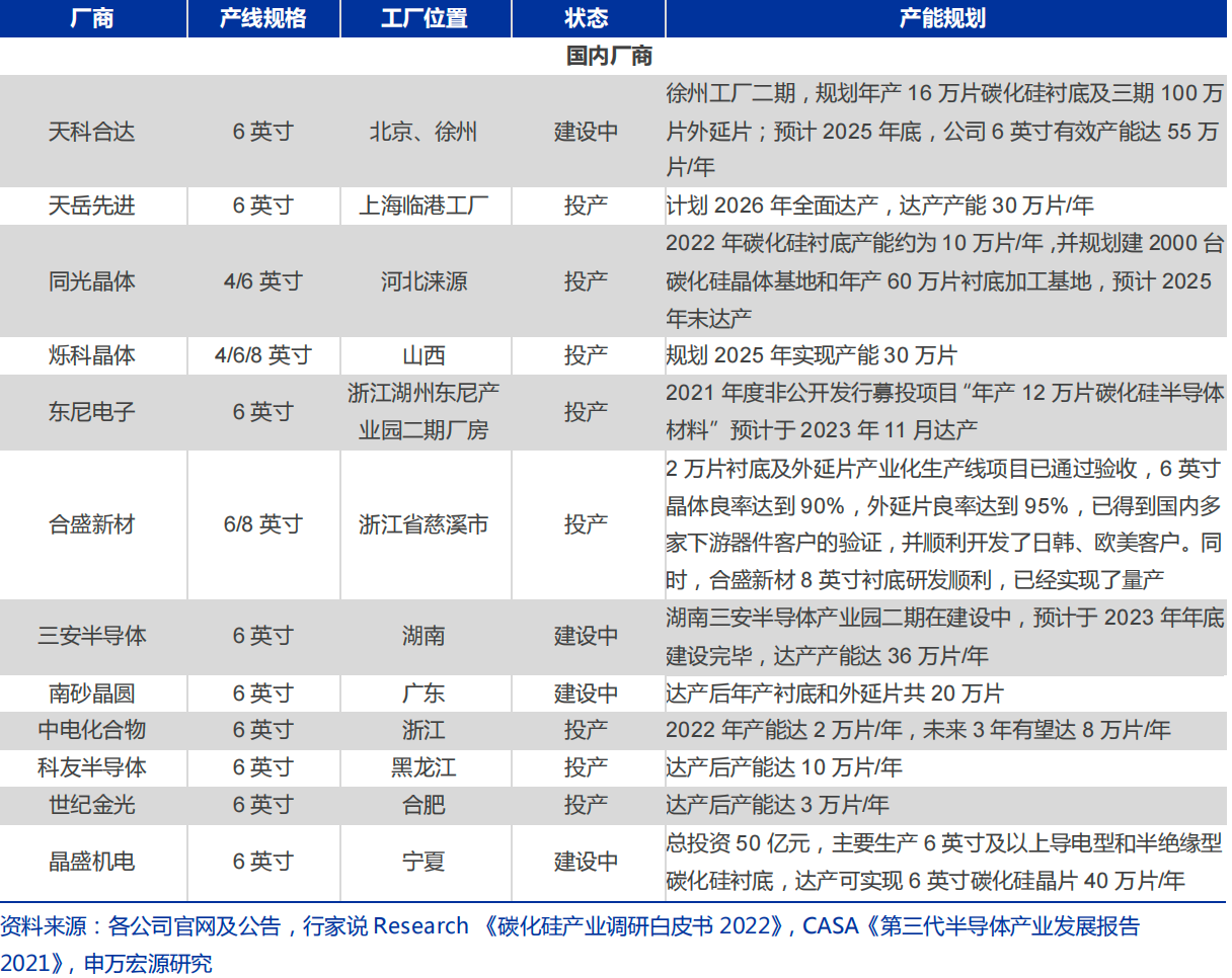 國內外碳化硅襯底廠商產能規劃,來源:申萬宏源