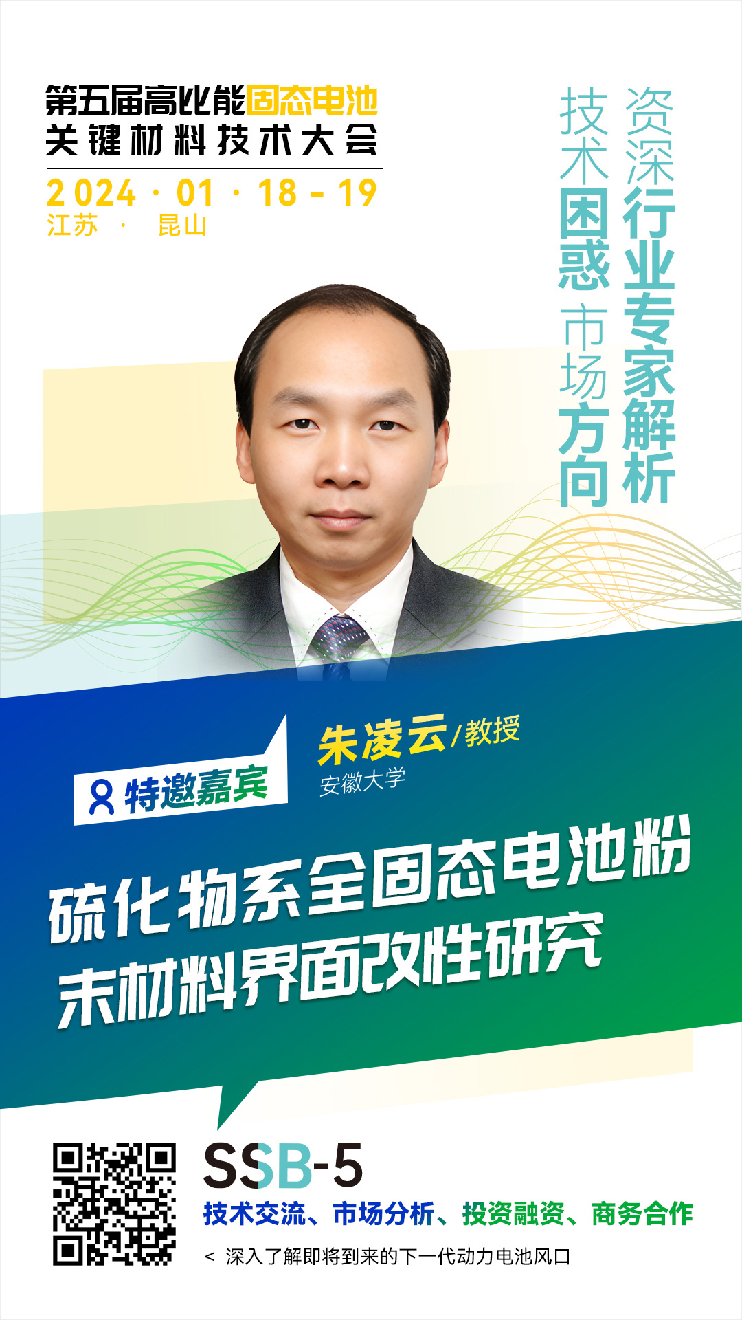 針對(duì)固態(tài)電池相關(guān)的技術(shù)、材料、市場(chǎng)及產(chǎn)業(yè)等方面的問題,中國粉體網(wǎng)將在昆山舉辦第五屆高比能固態(tài)電池關(guān)鍵材料技術(shù)大會(huì)。為致力于固態(tài)電池技術(shù)開發(fā)的企業(yè),科研院校,以及電動(dòng)車、儲(chǔ)能、特種應(yīng)用等終端企業(yè)提供信息交流的平臺(tái),開展產(chǎn)、學(xué)、研合作,共同推動(dòng)行業(yè)發(fā)展。屆時(shí),安徽大學(xué)朱凌云教授將作題為《硫化物系全固態(tài)電池粉末材料界面改性研究》的報(bào)告。報(bào)告主講人將對(duì)硫化物系全固態(tài)電池粉末材料界面改性研究做詳細(xì)介紹。