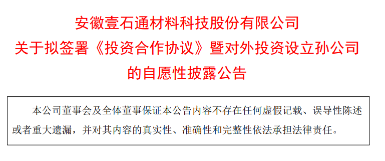壹石通11月17日晚間公告,為加快推動阻燃材料業務板塊的發展,促進硅膠泡棉等陶瓷化聚合物產品的市場推廣,全資子公司壹石通聚合物擬與韓國LK CELLTECH簽署《投資合作協議》,并由雙方在韓國合資設立公司,主營硅膠泡棉等陶瓷化聚合物產品的生產及銷售。