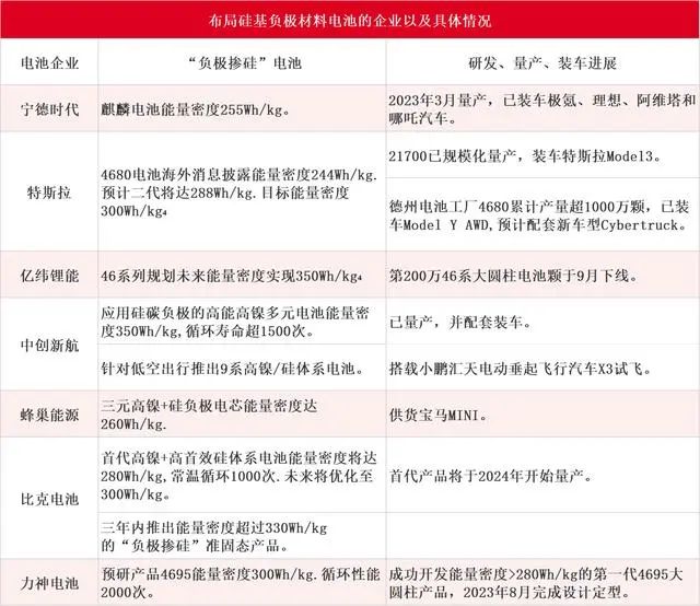 負極材料眾望所“硅”:特斯拉、蔚來已搶先裝車 寧德時代、億緯鋰能等電池巨頭積極擴產備戰