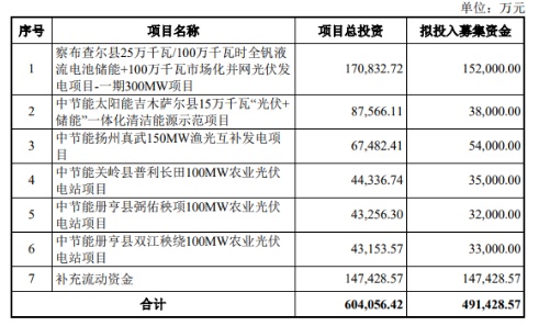 本次投資的光伏項目有:察布查爾縣25萬千瓦/100萬千瓦時全釩液流電池儲能+100萬千瓦市場化并網(wǎng)光伏發(fā)電項目-一期300MW項目;中節(jié)能太陽能吉木薩爾縣15萬千瓦“光伏+儲能”一體化清潔能源示范項目;中節(jié)能揚州真武150MW漁光互補光伏發(fā)電項目;中節(jié)能關(guān)嶺縣普利長田100MW農(nóng)業(yè)光伏電站項目;中節(jié)能冊亨縣弼佑秧項100MW農(nóng)業(yè)光伏電站項目。