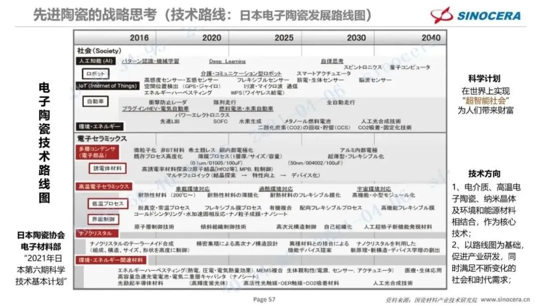 以日本陶瓷協(xié)會電子材料部發(fā)布的日本電子陶瓷發(fā)展路線圖來看,其可以精準的將未來電子陶瓷的科學計劃和技術(shù)方向布局到未來25年。