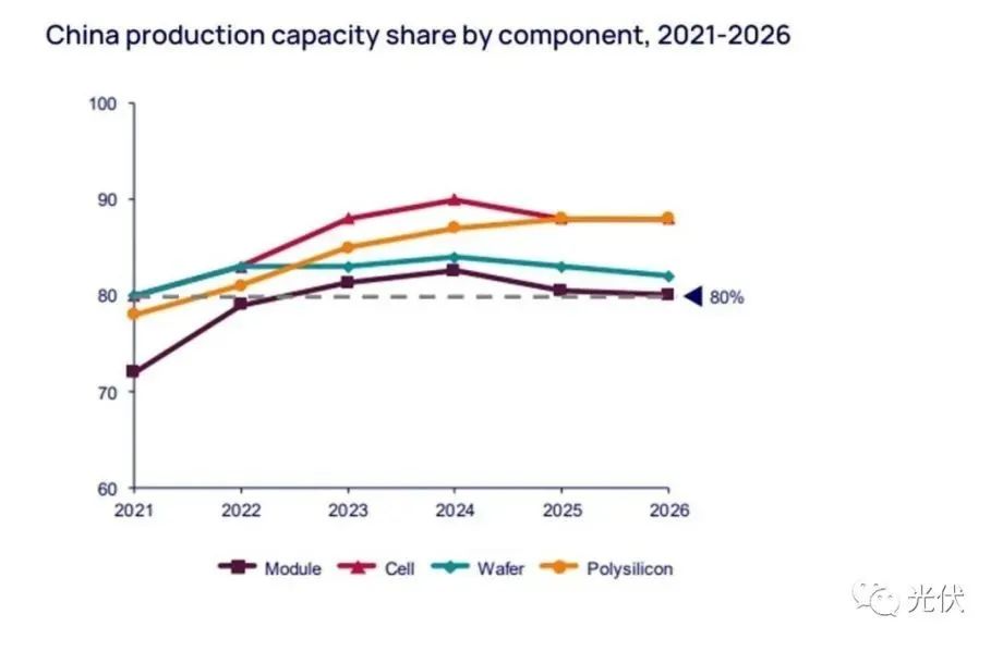 中國粉體網(wǎng)訊 今年在太陽能行業(yè)投資1300多億美元后,從2024年初開始,中國將占據(jù)全球太陽能電池組件產(chǎn)能的80%以上。究其原因,部分是因?yàn)榕c歐美國家相比,中國制造的組件,包括多晶硅、硅片和電池片便宜得多。盡管海外市場政府政策變化將引發(fā)太陽能制造本地化現(xiàn)象,但與中國制造商相比,還是缺乏成本競爭力。
