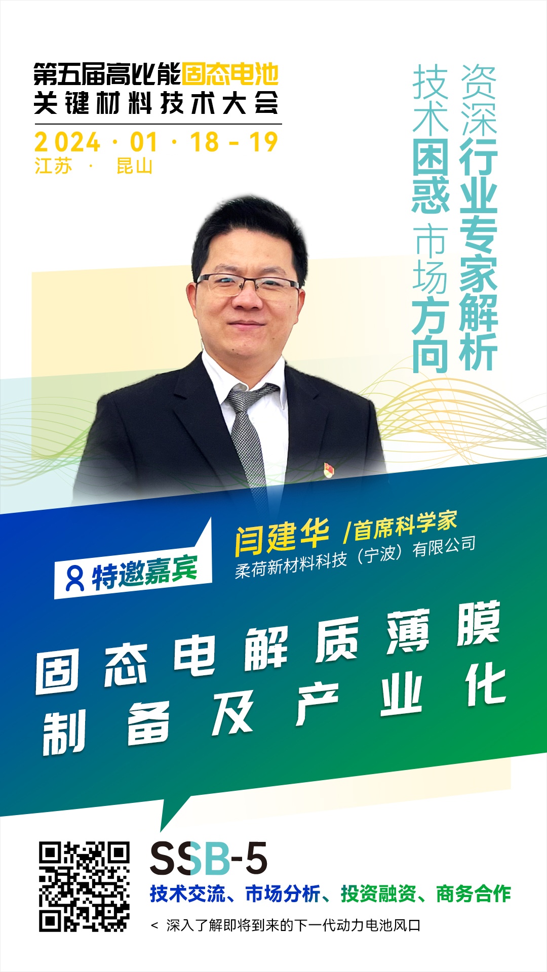針對固態電池相關的技術、材料、市場及產業等方面的問題,中國粉體網將在昆山舉辦第五屆高比能固態電池關鍵材料技術大會。為致力于固態電池技術開發的企業,科研院校,以及電動車、儲能、特種應用等終端企業提供信息交流的平臺,開展產、學、研合作,共同推動行業發展。屆時,東華大學教授、柔荷新材料科技(寧波)有限公司首席科學家閆建華將作題為《固態電解質薄膜制備及產業化》的報告。