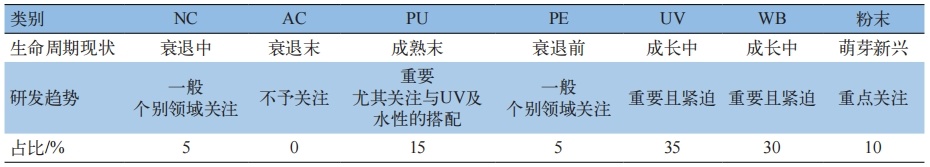 (3)開發新一代的清漆:包括開發具有無光(亞光)、抗劃傷、自修復、自清潔(不沾灰塵)清漆和水性清漆。