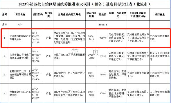 中國(guó)粉體網(wǎng)訊 近日,廣西壯族自治區(qū)重大項(xiàng)目建設(shè)推進(jìn)領(lǐng)導(dǎo)小組辦公室印發(fā)了關(guān)于2023年第四批自治區(qū)層面統(tǒng)籌推進(jìn)重大項(xiàng)目清單的通知,北流列入清單項(xiàng)目共4個(gè),總投資26.49億元。