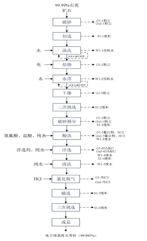 電子級(jí)高純石英砂生產(chǎn)工藝流程
