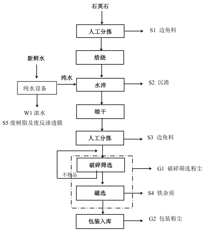 (8)包裝入庫:成品磁選后的石英砂進行包裝,入庫待售。